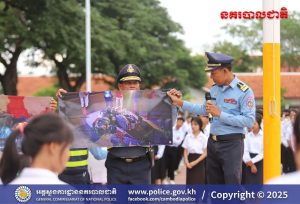 ពោធិ៍សាត់៖ នៅព្រឹកថ្ងៃទី១០ ខែវិច្ឆិកា ឆ្នាំ២០២៥ លោកឧត្តមសេនីយ៍ត្រី នូវ តាល់ ស្នងការរងទទួលផែនការងារ នគរបាលសណ្តាប់ធ្នាប់ និងចរាចរណ៍ នៃស្នងការដ្ឋាននគរបាលខេត្តពោធិ៍សាត់ បានដឹកនាំក្រុមការងារជំនាញ ចុះធ្វើការផ្សព្វផ្សាយអប់រំអំពី ច្បាប់ចរាចរណ៍ផ្លូវគោក និងការប្រើប្រាស់ផ្លូវ យ៉ាងទូលំទូលាយ ជូនដល់លោកគ្រូ អ្នកគ្រូ និងជាពិសេសគឺ សិស្សានុសិស្ស នៃវិទ្យាល័យពោធិ៍សាត់។