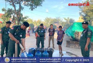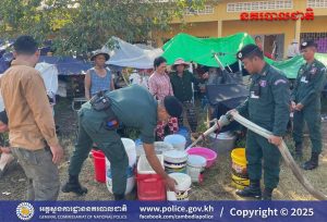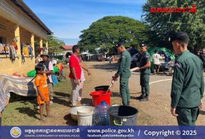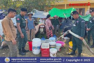 បន្ទាយមានជ័យ ៖ អនុវត្តតាមការដឹកនាំបញ្ជាដ៏ខ្ពង់ខ្ពស់របស់ ឯកឧត្តម នាយឧត្តមសេនីយ៍ ស ថេត អគ្គស្នងការនគរបាលជាតិ នៅថ្ងៃទី១៦ ខែធ្នូ ឆ្នាំ២០២៥នេះ លោកឧត្តមសេនីយ៍ទោ សិទ្ធិ ឡោះ ស្នងការ នៃស្នងការដ្ឋាននគរបាលខេត្តបន្ទាយមានជ័យ បានដាក់ចេញនូវបទបញ្ជាដល់កម្លាំងផែនជំនាញ និងកម្លាំងអធិការដ្ឋាននគរបាលតាមបណ្តាក្រុង/ស្រុក ត្រូវនាំគ្នាដឹកទឹកចុះចែកដល់ប្រជាពលរដ្ឋនៅតាមជុំរំភាសឹក ដែលពួកគាត់បានកំពុងស្នាក់នៅកំពុងជួបការខ្វះខាតទឹកប្រើប្រាស់ចាំបាច់ចំពោះមុខ។