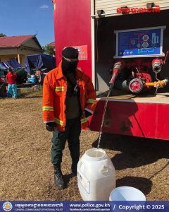 នៅរសៀលថ្ងៃអង្គារ៍នេះ លោកឧត្តមសេនីយ៍ត្រី ប៊ុន ផេង ស្នងការរង ផែនការងារគ្រប់គ្រងអាវុធគ្រឿងផ្ទុះ និងអគ្គិភ័យ, លោកវរសេនីយ៍ទោ វឹក វើន នាយការិយាល័យបង្ការ ពន្លត់អគ្គភ័យ និងសង្គ្រោះ បានដឹកនាំកម្លាំងនគរបាលជាច្រើនរូប បាននាំយករថយន្តដឹកទឹកចំនួន ០២គ្រឿង ចុះចែកទឹកដល់ជនភាសឹកប្រើប្រាស់ចំនួន ០២មណ្ឌល រួមមាន ក្រុងសិរីសោភ័ណ ប្រើប្រាស់ទឹកអស់ចំនួន ០២រថយន្ត និងស្រុកមង្គលបូរី។