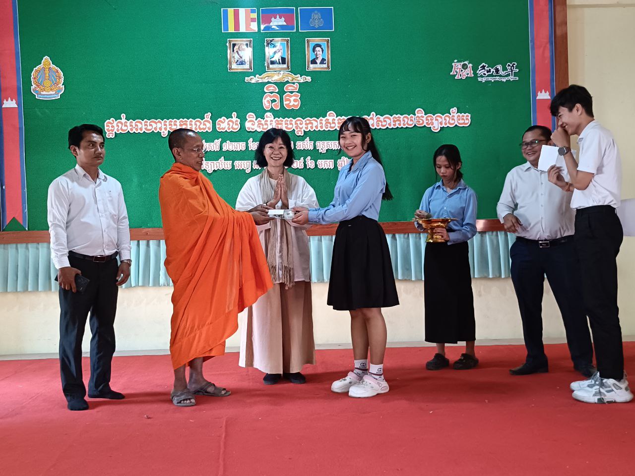 ព្រះឃោសរ័ត​ យី​ យ៉ុន​ ព្រះធម្មធរគ​ណ​ គណមហានិ​កាយ​ បានមានសង្ឃដី​ការចម្រើនពរ​ ថ្លែង​អំណ​រគុណ​យ៉ាងក្រៃ​លែង​ ចំពោះប្រជា​ជននៃ​កោះតៃវ៉ាន់ជា​ពិសេសលោកស្រីនាយិកាដែ​លតែងតែយ​កចិត្តទុកដាក់​ជួយឧបត្ថម្ភលើសម្ភារៈថវិកាដល់ព្រះសង្ឃពិសេសជួយដល់វិស័យអប់រំសិក្សា។ ជាក់ស្តែង​នៅថ្ងៃនេះ​បានជួយផ្តល់ រូបករណ៍ដល់សម​ណនិស្សិត និស្សិតនៅឆ្នាំទទួល​បាន​ ៥០០​ដុល្លារ​សហរដ្ឋអាមេ​រិក។